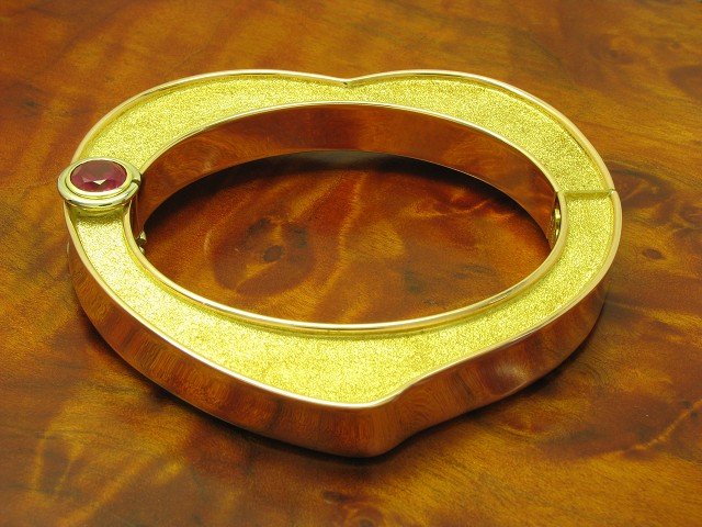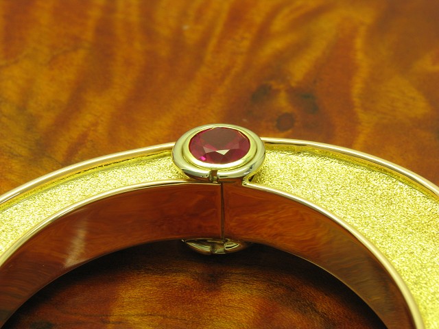 18kt GOLD ARMREIF MIT BRILLANT & RUBIN BESATZ