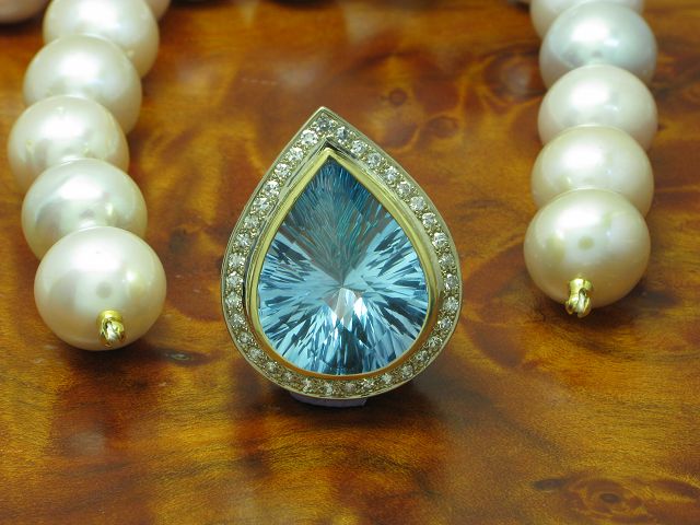 Traumstück, aufwändig besetzt mit Diamanten und einem Blautopas kombiniert mit Gold in hochfeiner Qualität.