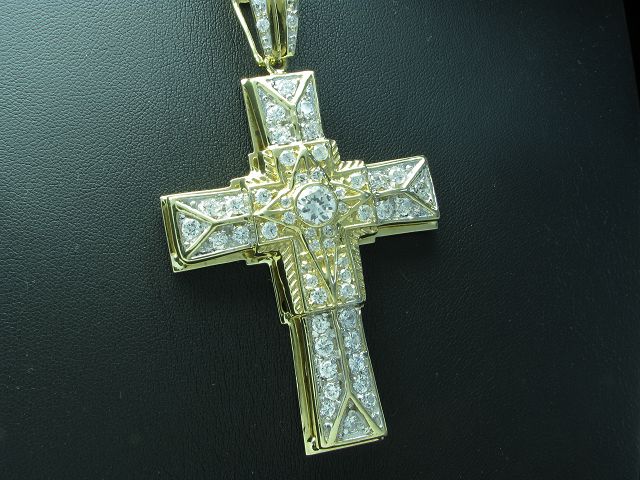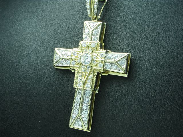 14kt 585 GOLD ANHÄNGER KREUZ MIT 6,48ct BRILLANT BESATZ / BRILLANTKREUZ BRILLANTANHÄNGER