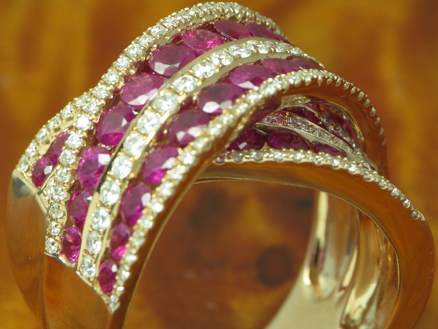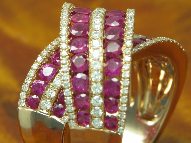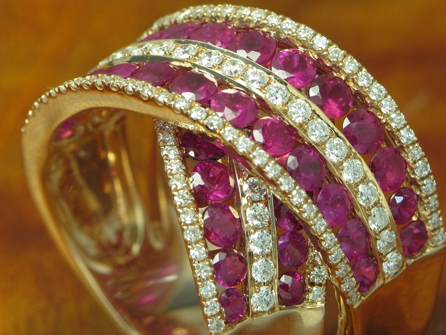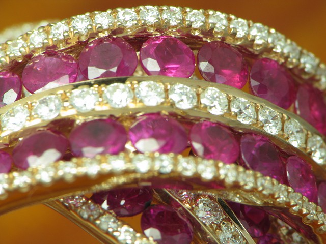 Traumstück, aufwändig besetzt mit Brillant und Rubin kombiniert mit Gold in hochfeiner Qualität.