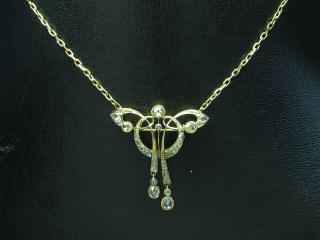 8kt 333 GOLD KETTE MIT 14kt 585 GOLD ANHÄNGER MIT 3,13ct DIAMANT BESATZ ART-DECO
