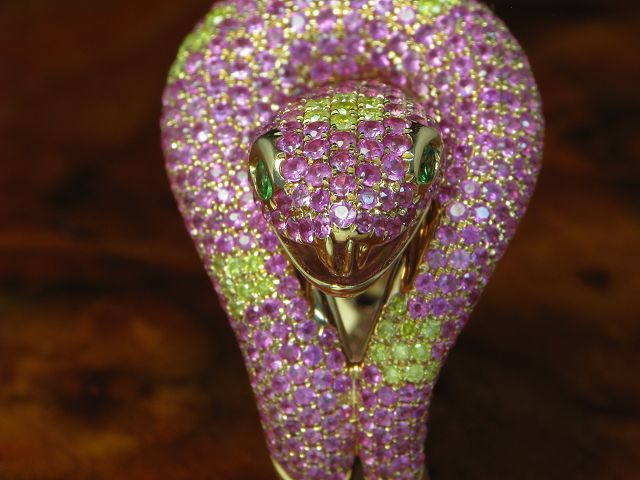 18kt 750 GOLD SCHLANGEN RING MIT 0,46ct BRILLANT & 4,676ct SAPHIR HANDARBEIT BRILLANTRING